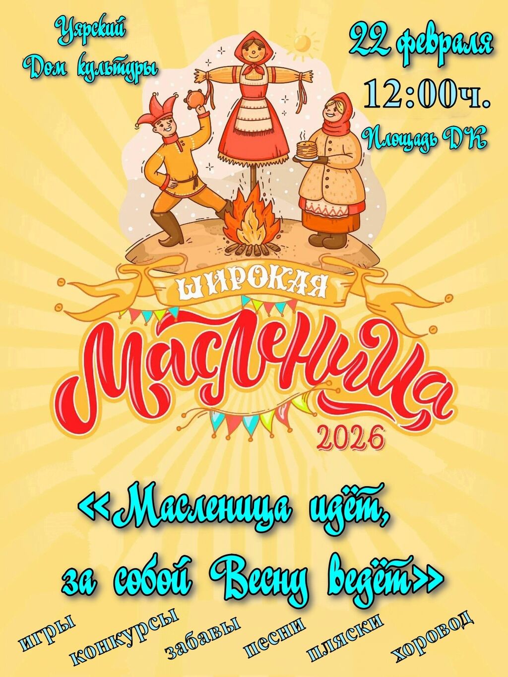 22 февраля в 12:00ч. Площадь ДК "Масленица идёт,за собой Весну ведёт"